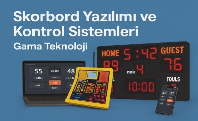 Gama Teknoloji, profesyonel LED skorbordların yanında, bu panoları yöneten gelişmiş skorbord yazılımları da geliştirmektedir.